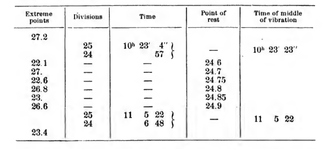 - Mesela, bu örnekte, orta noktasının iki tarafında olduğunu tahmin ettiği 24 ve 25 noktalarını seçmiş ve sarkaç kolunun bu noktalardan geçtiği zamanları ölçmüş,