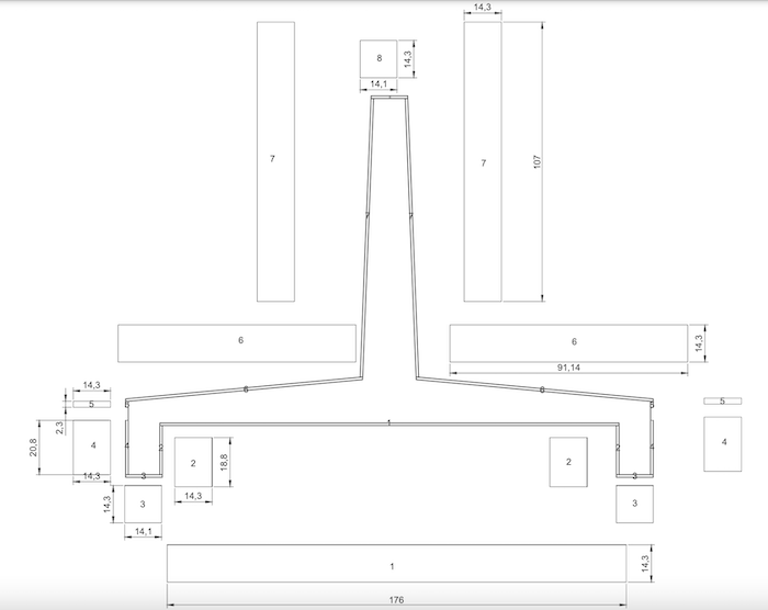 - Cavendish'in verdiği kesitten tahtanın kalınlığını 1 cm olarak hesapladım fakat 525. sayfada Cavendish, "The specific gravity of the wood used in this case is 0.61, and its thickness is \(\frac{3}{4}\) of an inch…" diyor. Yani 0.75 inch = 1.9 cm olduğuna göre Cavendish kasanın tahtasının kalınlığının 2 cm olduğunu söylüyor.
